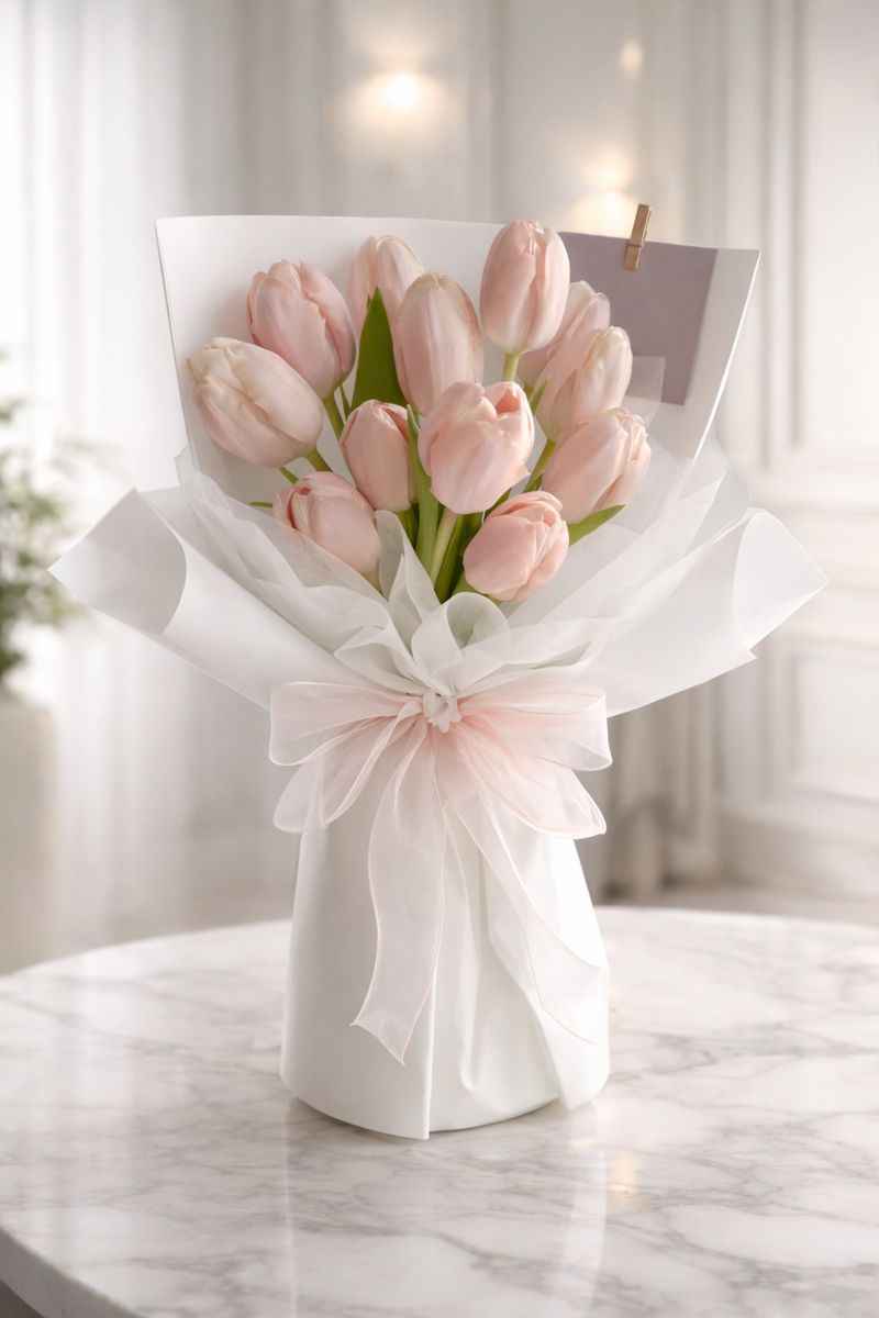 Tulips symbolize perfect love and fresh beginnings, making them an excellent Valentine’s Day choice. A blush pink tulip bouquet feels modern, light, and graceful, appealing to those who prefer subtle romance over bold gestures. This bouquet style is ideal for minimalists who still want their gift to feel meaningful and refined.