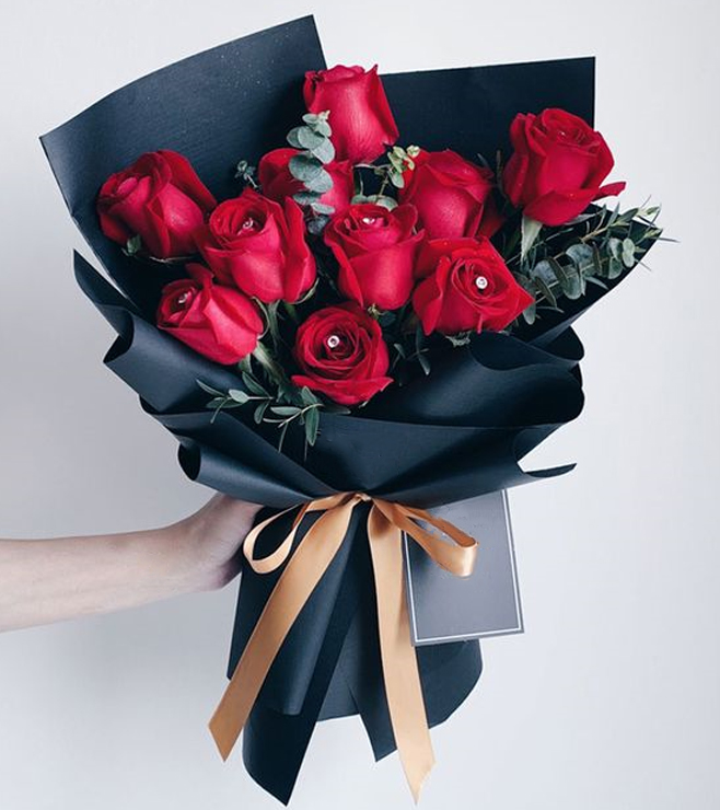Red roses remain the ultimate symbol of passion and love. Wrapped in sleek black paper, this bouquet adds a modern, stylish edge to a timeless Valentine’s gift. It’s bold, expressive, and perfect for making a romantic statement without exceeding your budget.