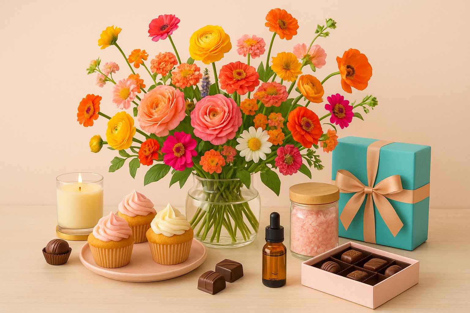 مجموعات هدايا تجمع بين الأزهار الطازجة والإضافات المميزة مثل الكعك، الشوكولاتة، و الكب كيك يتم اختيارها بشكل متزايد كهدايا أعياد الميلاد وهدايا المضيفات، خاصة بين المهنيين والمغتربين. هذه العبوات تقضي على التخمينات وترفع من قيمة الهدية بفضل اختيارها المدروس بعناية.