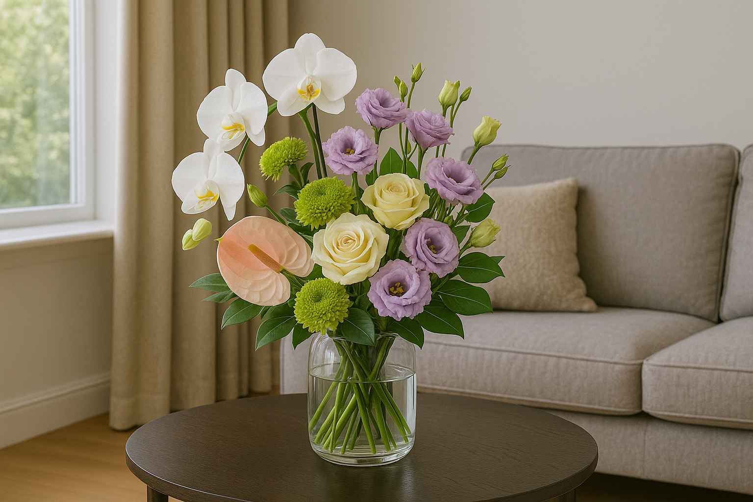 ليزيانثوس وأقحوان، التي تُقدَّر لقدرتها على الصمود خلال التسليم والعرض لفترات طويلة