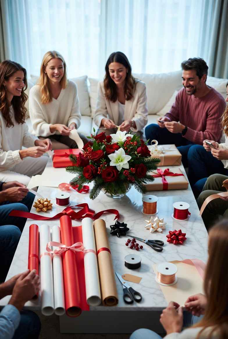 ابدأ بجزء "البحث عن العروض". يمكن للجميع تصفح الإنترنت معًا ومشاركة أفكار الهدايا والبحث عن العروض وأكواد الخصم. يبدو الأمر وكأنه مهمة مشتركة، وغالبًا ما يساعد ذلك الأشخاص على إنهاء التسوق بشكل أسرع. ثم انتقل إلى جلسة تغليف الهدايا حيث يقوم الجميع بتغليف ما اشتروه.