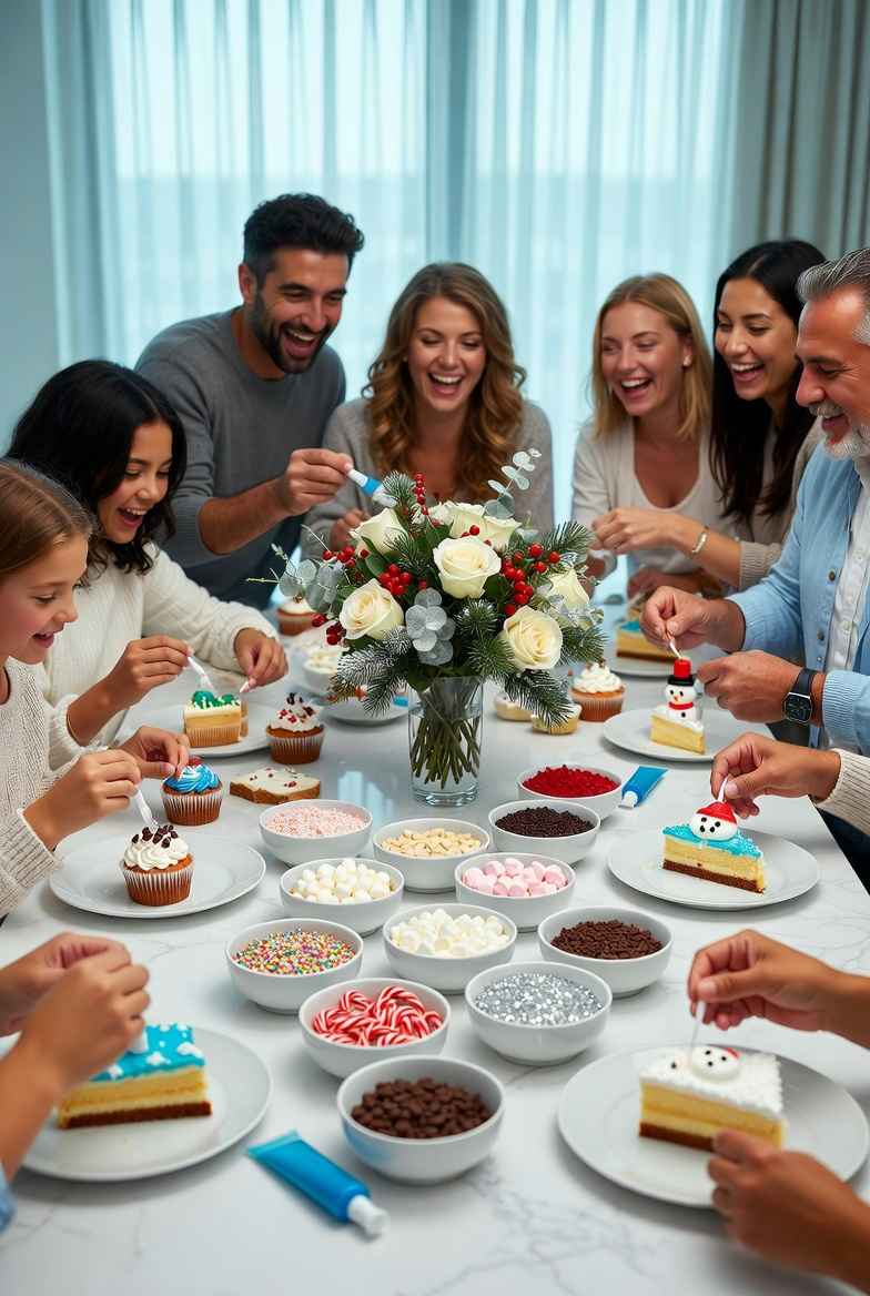 هذه واحدة من أكثر أنشطة عيد الميلاد متعةً وأقلها ضغطًا، خاصةً لأنها مناسبة سواء كان لديك أطفال أو أصدقاء أو زملاء عمل. الفكرة بسيطة: يقوم الجميع بتزيين الكعك أو شرائح الكعكة بمجموعة محدودة من الإضافات، وعادةً ما تكون النتائج مضحكة ومبدعة بشكل مدهش.