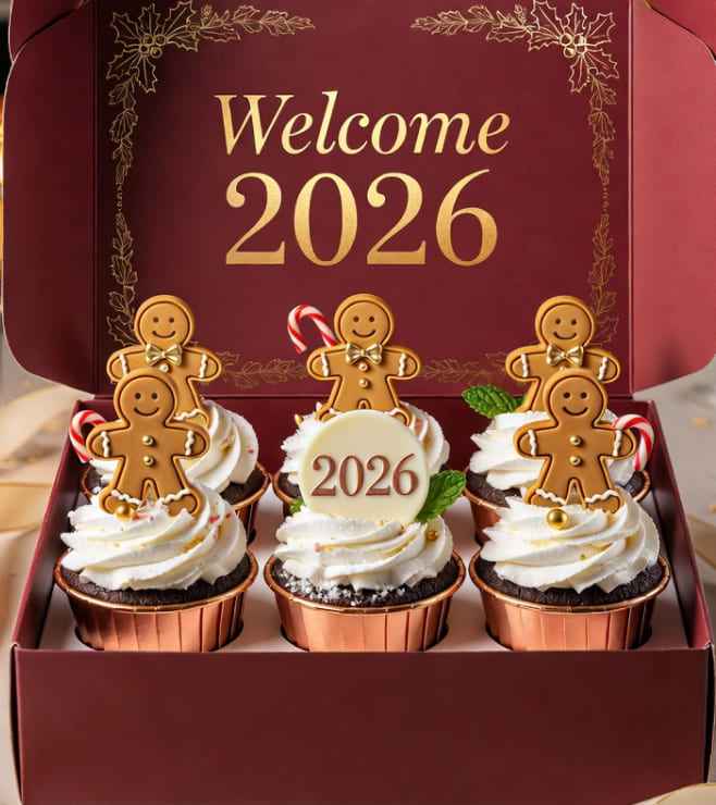 كب كيك الزنجبيل - كب كيك الترحيب مزين بشخصيات السنة الجديدة وعبارة "مرحبًا بكم في 2026" المبهجة، وهو مصمم خصيصًا لطاولات الاحتفالات. إنه مثالي للعائلات التي لديها أطفال، وحفلات الأصدقاء في المنازل، وفرق العمل الصغيرة في المكاتب، لأن الكب كيك سهل التقسيم والتقديم، كما أنه مثالي للتصوير في لحظة العد التنازلي عندما يرغب الجميع في تناول شيء حلو دون الحاجة إلى تقطيع كعكة كاملة.