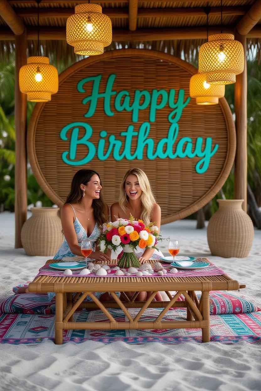تجهيزات لتناول الطعام على الشاطئ الخاص لقضاء أمسية تستحق التقاط صور لها ونشرها على إنستغرام.