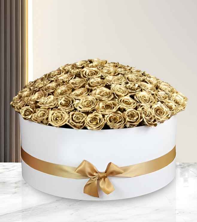 Timeless and versatile, roses such as our Gleaming Rose Hatbox come in a variety of colors to suit every mood. Red roses exude passion, while gold roses symbolize luxury, success, and celebration, making them the perfect choice for starting the New Year on a glamorous note