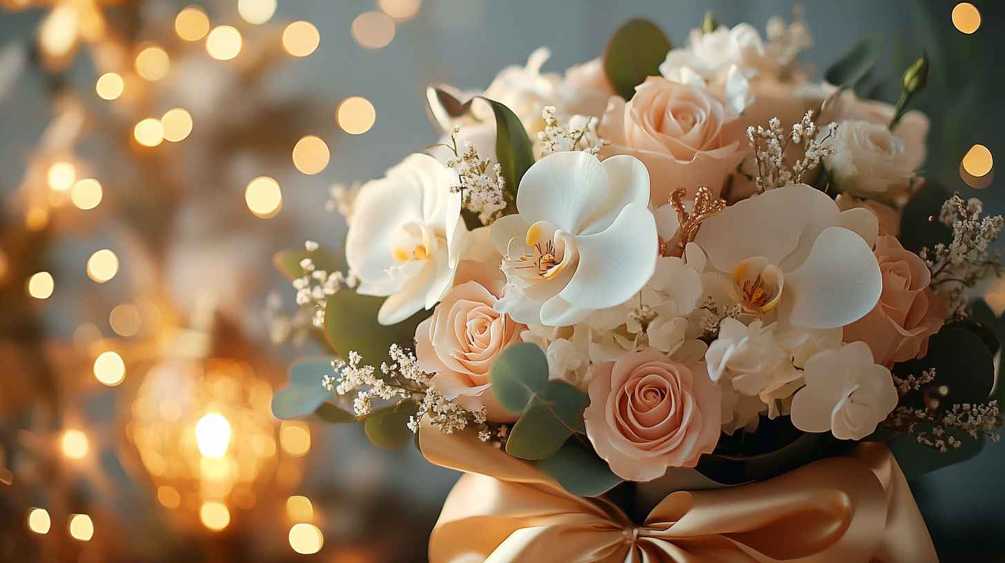 Elegant White & Gold Bouquets: These symbolize peace, purity, and prosperity — perfect for formal settings or religious households.
