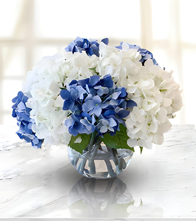 For those who adore soft, delicate hues, the Blue Snow Hydrangea Bouquet is a dreamy choice. Featuring white and blue hydrangeas in a transparent bowl, this arrangement offers a cool, refreshing aesthetic that complements Ramadan’s peaceful atmosphere. It makes an excellent decorative piece for homes and iftar gatherings, adding a touch of elegance and calmness.