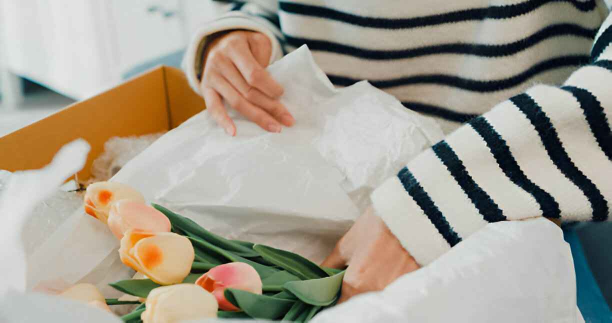 تعامل دائمًا مع أزهارك بعناية أثناء تفريغها من العبوة. قم بقص السيقان بزاوية طفيفة لتسهيل امتصاص الماء بشكل مثالي. لمزيد من التفاصيل حول الممارسة المهمة المتمثلة في قص السيقان وتأثيرها على تعزيز نضارة أزهارك، تأكد من الاطلاع على منشورنا على المدونة، تعظيم النضارة: كم مرة يجب تقليم سيقان الزهور؟