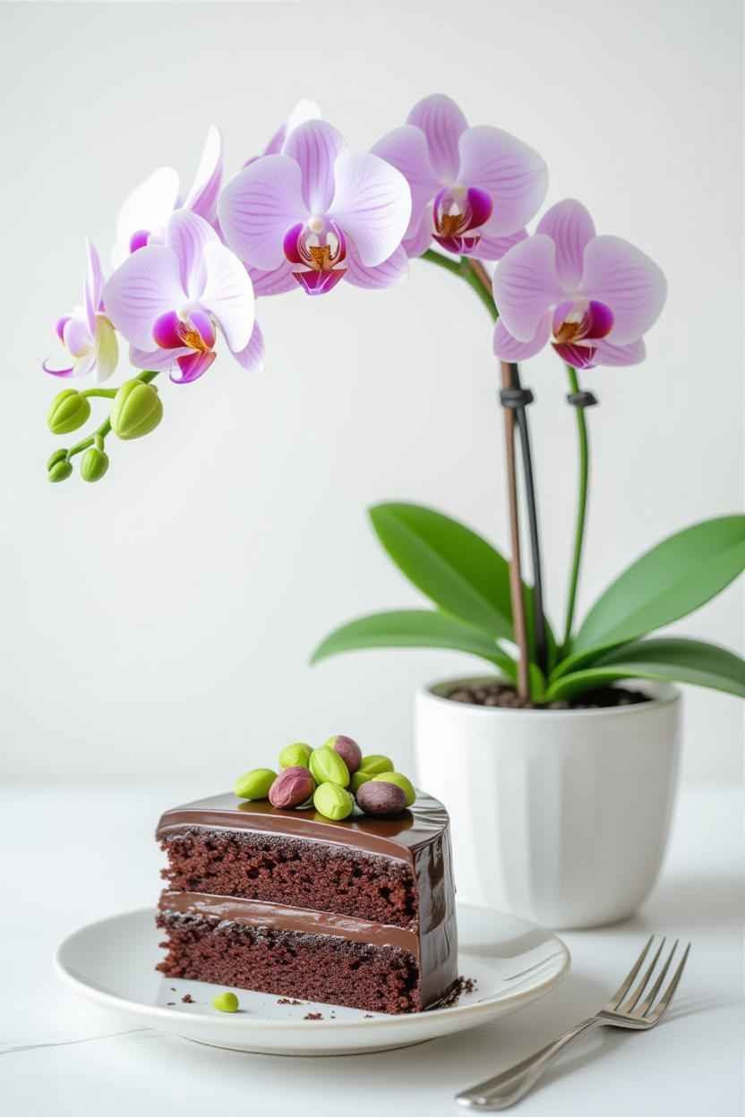 Cake: Sleek, minimally decorated cake; chocolate or pistachio for a premium feel.