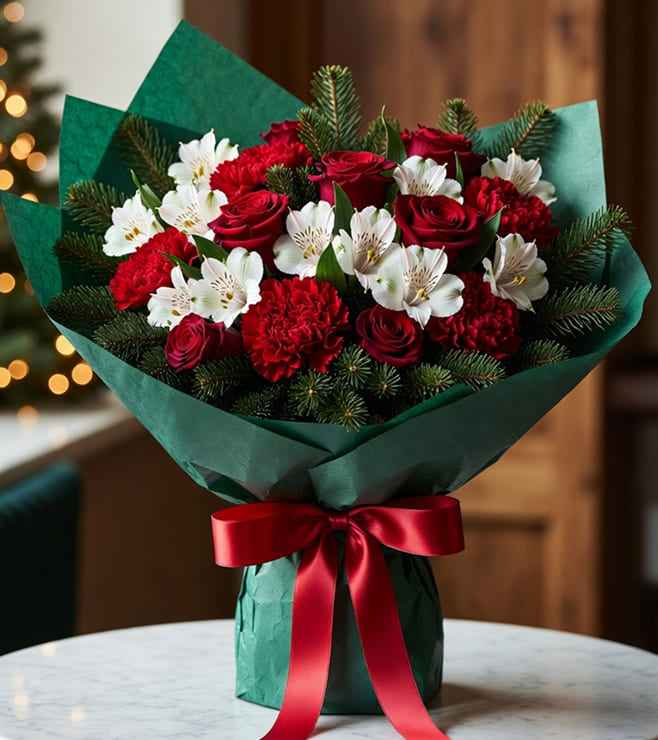 Nothing says "Christmas" like a beautifully arranged bouquet of red and white flowers. A mix of roses, carnations, and delicate greenery, paired with ribbons and festive accents, this bouquet is the perfect gift to spread cheer. The elegant design captures the essence of the season with its warm tones and fragrant blossoms. Whether you present this as a standalone gift or pair it with other treats, it’s a thoughtful and elegant way to show your appreciation and holiday spirit. If you're in Dubai, consider gifting fresh flowers in Dubai to brighten someone’s day with this lovely bouquet.
