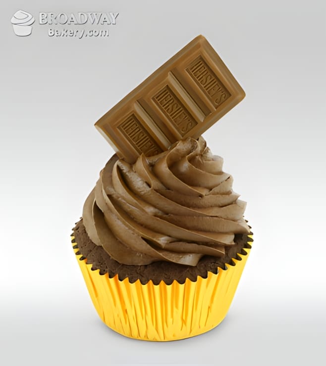 Chocoholics rejoice! Now, you can have your cupcake just how you like it - rich and chocolaty! Our delicious chocolate cupcake is studded with chocolate chips and topped with a delectable, chocolate cream cheese frosting. To top it all off, we've added a generous piece of Hershey's chocolate turning our Chocolate Bomb Cupcake into a work of art.
