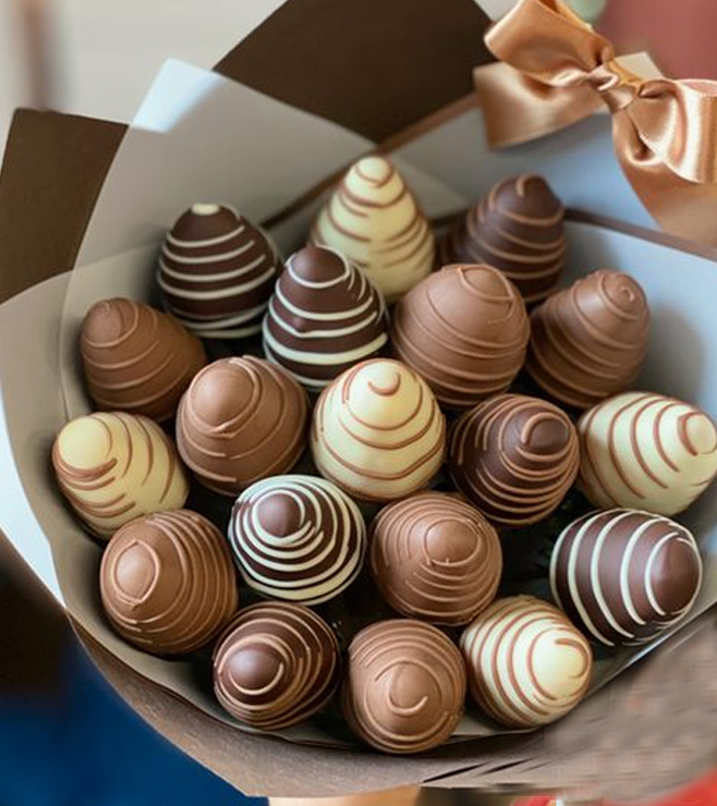 Elevate your celebrations with our Dipped Strawberry Charm Bouquet. This exquisite bouquet features plump, juicy strawberries dipped in luscious chocolate, creating a perfect harmony of sweetness and elegance. Whether you're gifting a loved one or indulging in a delightful treat yourself, this charming bouquet is a delightful way to add a touch of sophistication to your holiday gatherings.