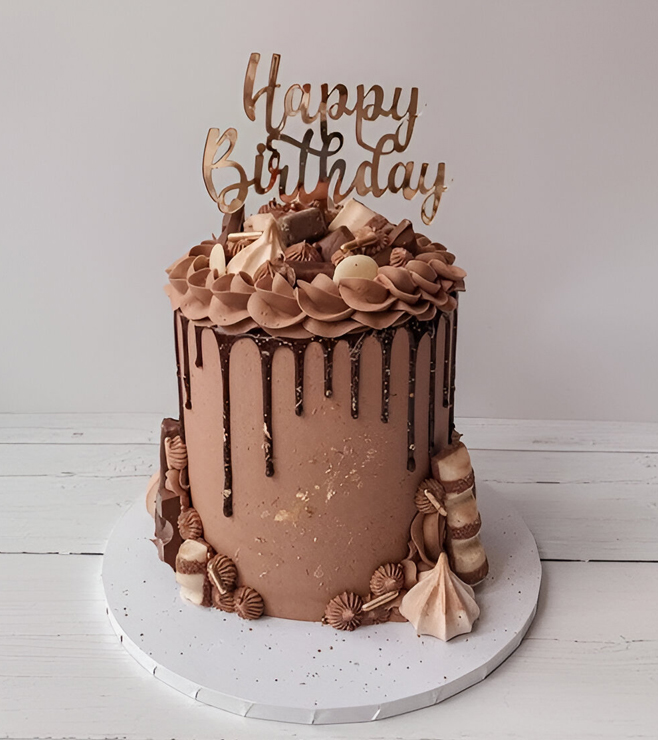 Experience pure chocolate ecstasy with our Rich Chocolate Cake, a decadent masterpiece designed for true chocolate aficionados. This sumptuous cake is generously topped with an array of fine chocolates and enveloped in a luscious chocolate drip, offering an intensely rich and satisfying chocolate experience in every bite. Perfect for any celebration, this cake is sure to be the highlight of your dessert table.